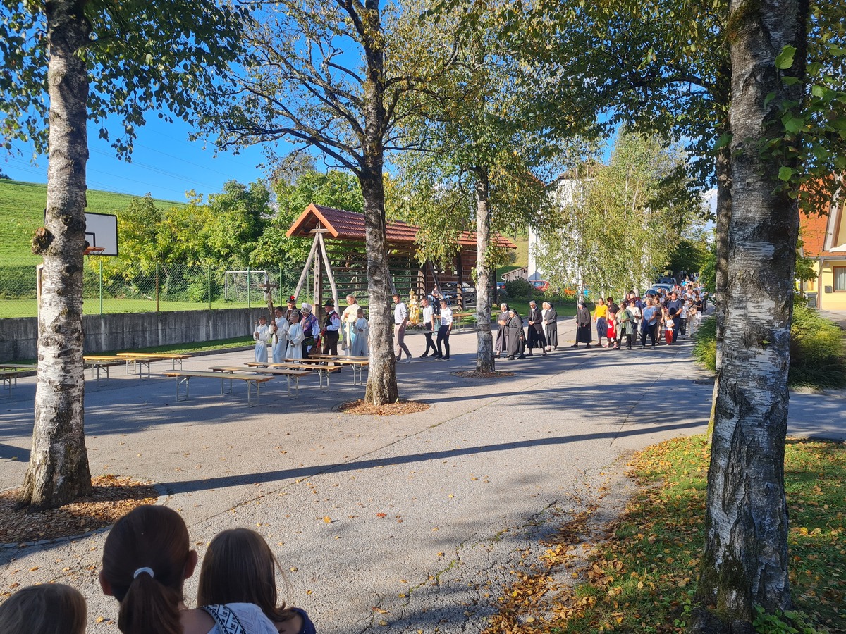 Po sveti maši je sledila procesija z Marijinim kipom izven cerkve proti samostanu. Procesijo je obogatilo petje cerkvenega pevskega zbora, petje litanij, Godba Dobrova-Polhov Gradec in pritrkovalci. Ob zaključku procesije je na župnijskem dvorišču sledil še blagoslov z Najsvetejšim, nato pa pogostitev vseh navzočih, kjer so se zbrani lahko družili v prijetnem vzdušju.