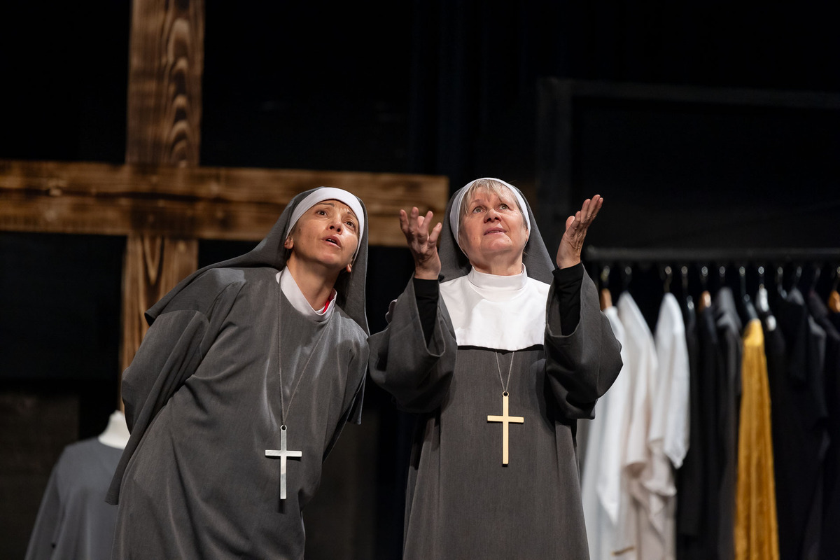 Skrivnosti, lažne identitete in romance bodo v tej farsi sunkovitih zapletov sprožile veliko smeha. Novinarjema Pavlu in Silviji se ponudi izjemna priložnost, ki jima obeta hiter skok po karierni lestvici. Njuna naloga je izslediti zmagovalca vinskega tekmovanja, kar ju pripelje do samostana sester Reda večnega šivanja. V iskanju resnice in slave je odločna Silvija pripravljena storiti vse, previdnejši Pavel pa išče nekaj povsem drugega… Pod krinko se nastanita v samostanu, njuna prisotnost pa skupaj s prihodom nove sestre v Redu večnega šivanja povzroči paranojo, da so med njimi iz Rima poslani vohuni z namenom, da jih zaprejo.