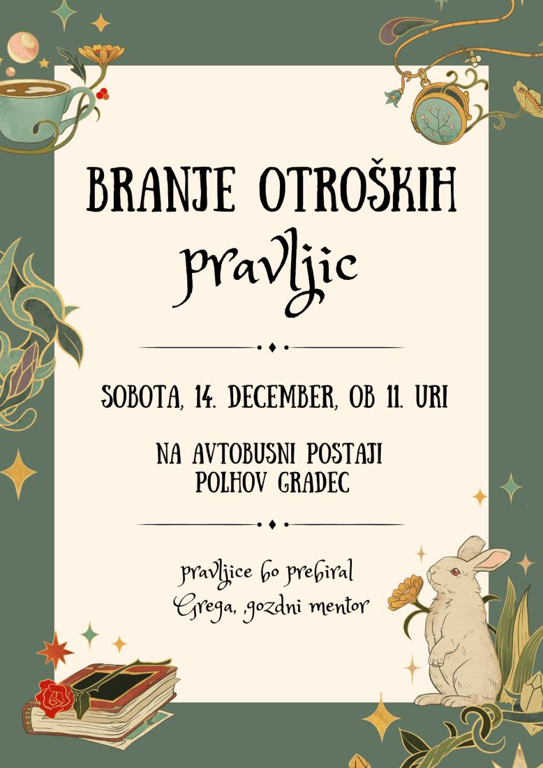 Dragi otroci in starši, v soboto, 14.12.2024, pridite ob 11. uri v pravljični svet na postajo. Družili se bomo predvidoma eno uro.