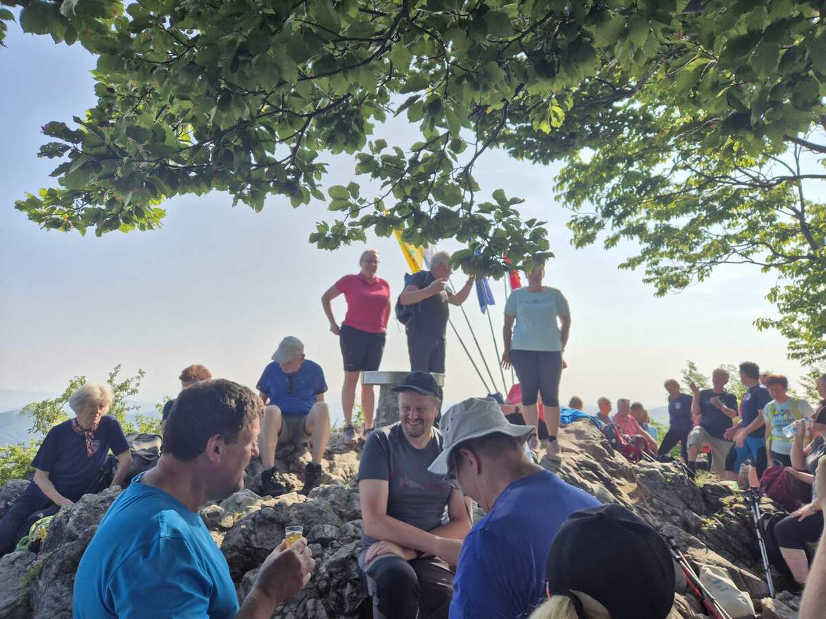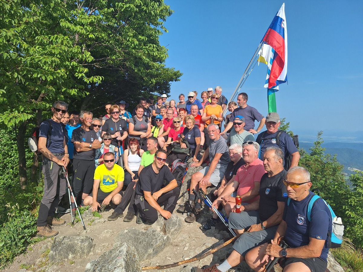 Pohodniki iz Polhovega Gradca so se zbrali pri koči na Ravneku in se skupaj odpravili proti vrhu Grmade, kjer so jih že čakali planinci iz Medvod.