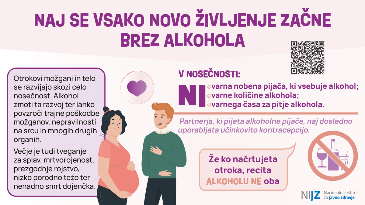 Več informacij o preprečevanju izpostavljenosti alkoholu v nosečnosti in podpori staršem je na voljo na spletni strani NIJZ.