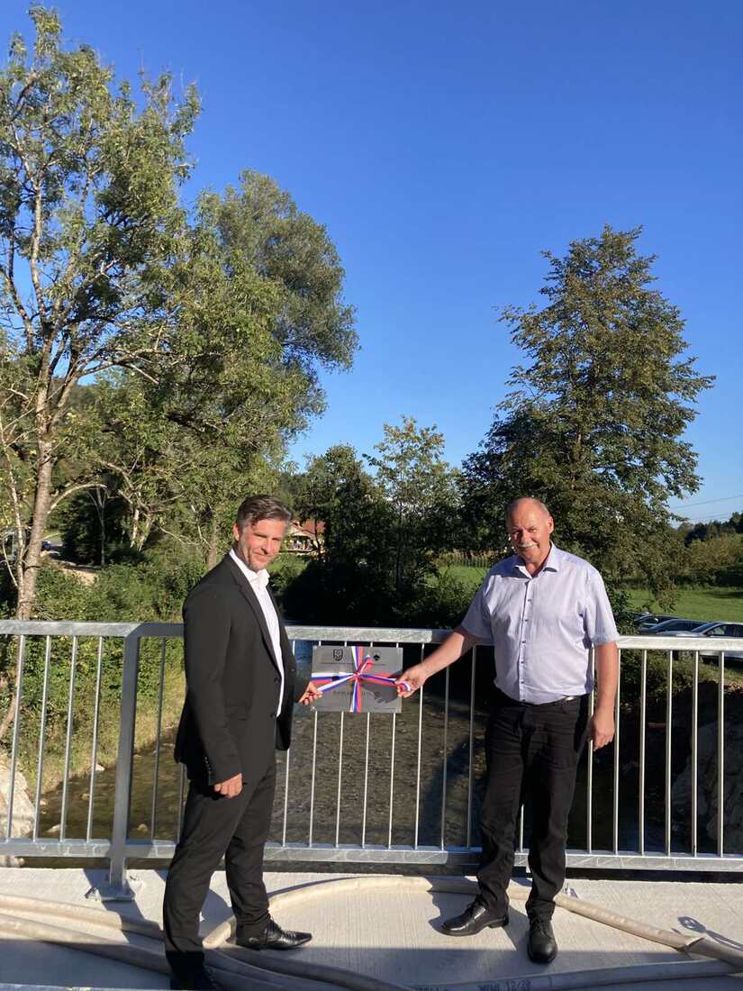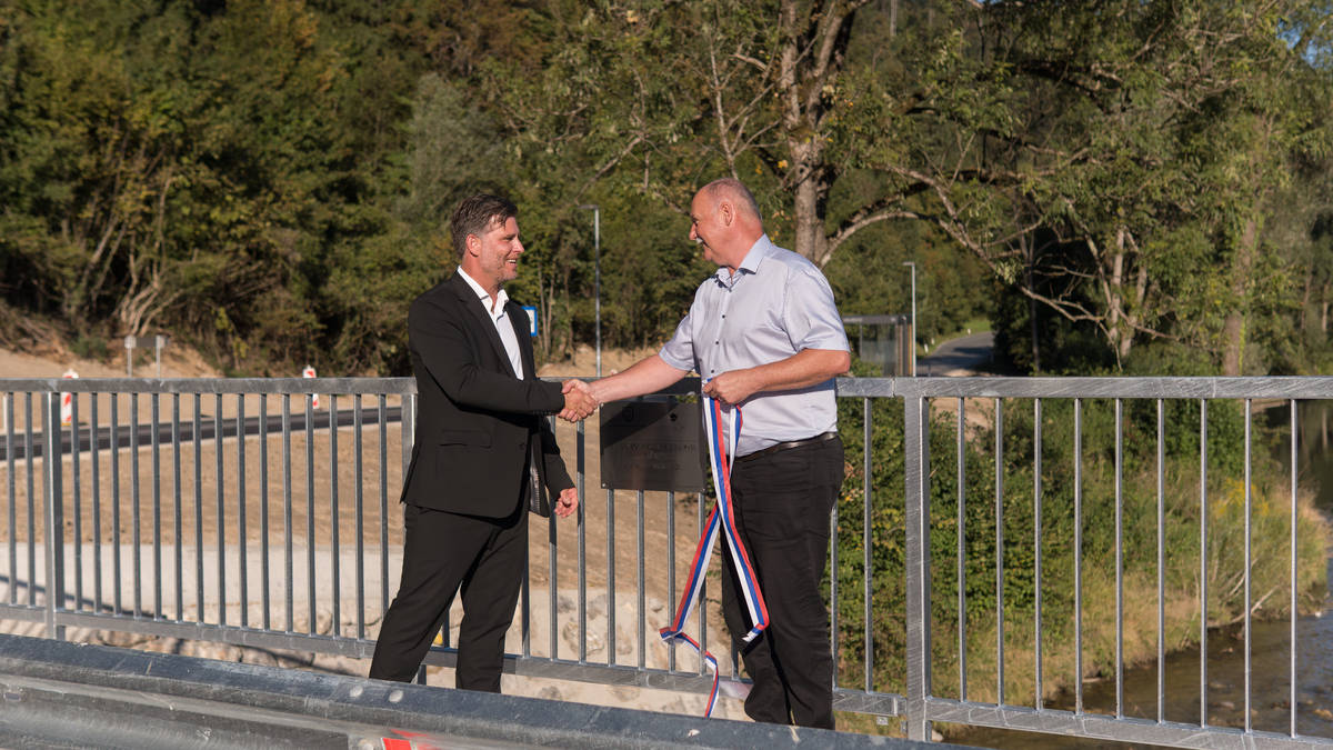 Župan Jure Dolinar je ob otvoritvi spomnil, da je bil pred dvema letoma po katastrofalnih poplavah na tem mestu postavljen montažni most, ki ga je donirala Italija, danes pa se zaključuje projekt gradnje novega nadomestnega mostu. Projekt je zahteval več mesecev priprav, številna usklajevanja in veliko truda, a je prinesel tudi ureditev dela državne ceste ter dveh novih avtobusnih postaj. Nov most je zgrajen tako, da je bolj odporen na poplave in zagotavlja varnejšo povezavo. Vrednost celotnega projekta je znašala več kot 1,2 mio EUR. Ob tej priložnosti se je župan zahvalil projektantom, recenzentom, sodelavcem Državne tehnične pisarne, izvajalcem, gradbenemu nadzoru, krajanom, lastnikom zemljišč ter sodelavcem občinske uprave, ki so s sodelovanjem in podporo omogočili uspešen zaključek projekta.
