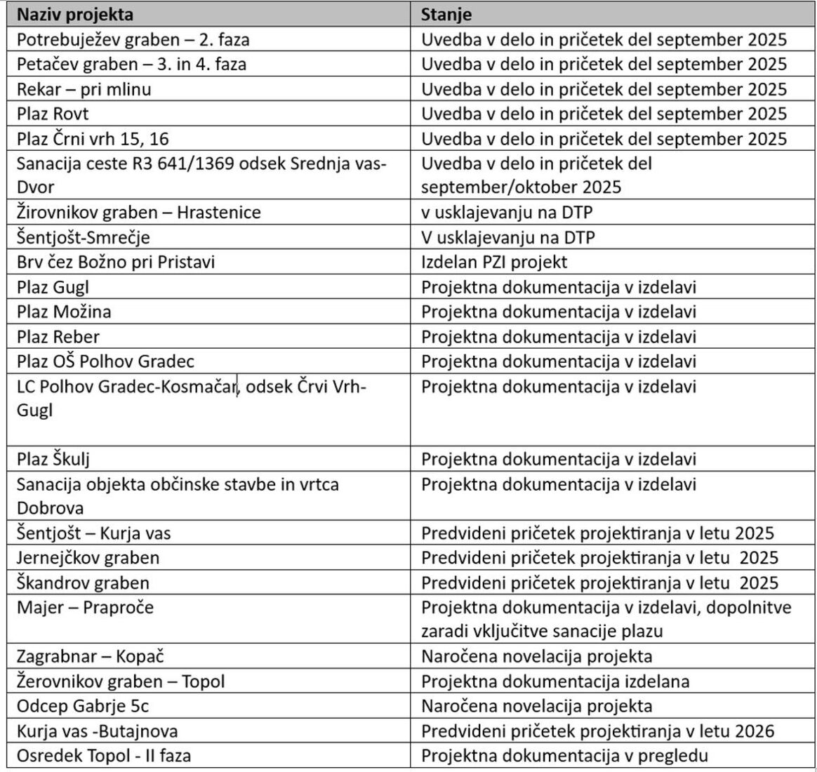 Počasnost prilivov državnih sredstev vpliva na večji zamik pričetka izvajanja gradbenih del in nadaljevanja projektov, kljub temu pa smo v pričakovanju aktivne gradbene jeseni. Ne glede na obsežne obveznosti in dolgotrajne postopke pridobivanja sredstev s strani države se naša občina še ni znašla v likvidnostnih težavah, s čimer pa se že soočajo nekatere druge občine. Več o tem se lahko seznanite tudi v objavljenem prispevku na RTV SLO na temo izvajanja projektov in črpanja državnih sredstev s strani Občine Gorenja vas – Poljane na povezavi: https://365.rtvslo.si/arhiv/slovenska-kronika/175159941