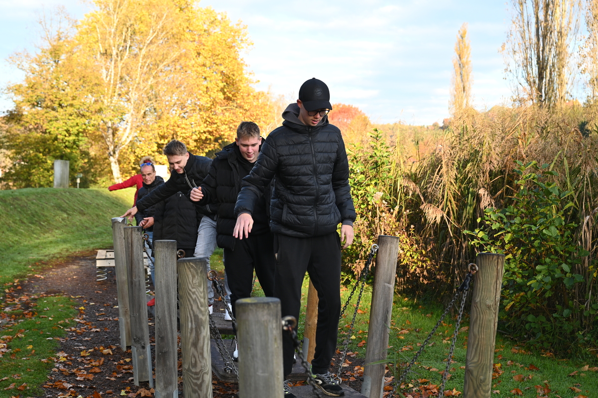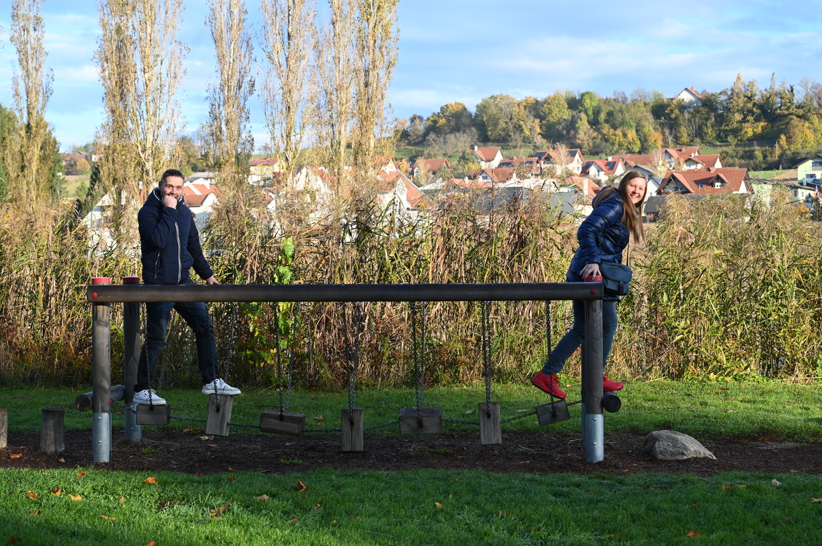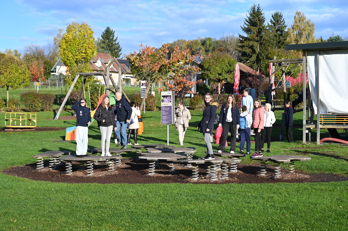 V soboto 25.oktobra se nas je cel avtobus – 52 + šofer Vinko odpravilo na izlet. Ob prav nič zgodnji uri 6.00, smo se zbrali na Dobrovi in pot nadaljevali proti prvi postojanki. Na Štajerskem smo pobrali še ravnatelja in našega glavnega planinskega vodnika Vilija in se podali na pot proti prvi postojanki. Malo za mejo smo se ustavili v parku motoričnih sposobnosti Gamlitz, kjer smo se izletniki vseh starosti in velikosti lahko preizkusili v različnih motoričnih disciplinah na kar 40 postajah po celotnem parku. Nekateri so trenirali ravnotežje, spet drugi preizkusili senzorično pot in se preizkusili v plezalnih veščinah. Večini je šlo super, le Matej je raje zaspal na soncu, Lana pa je padla že na prvi postaji. A nič za to. V slabi uri smo obdelali celoten poligon, nato se še malo podružili, nekaj pojedli in se odpravili na pot.