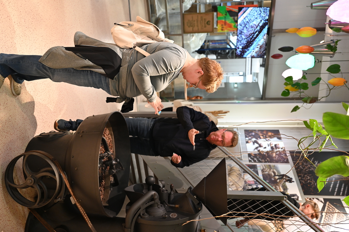 Podali smo se na interaktivni ogled celotnega procesa izdelave čokolade od zrna pa vse do tablice. Začeli smo z videom o sami proizvodnji in kakavovcem v Afriki, nato pa se o samem kakavu prepričali tudi z lastnimi očmi in brbončicami. Ob začetku smo dobili žličke in poizkušali različna kakavova zrna – zelo zanimiva. Nekatera zelo grenka, spet druga super okusna. Pot smo nadaljevali do prve velike čokoladne fontane, ki pa je zavedla prav vsakega. Prav vsakemu, ki je prišel mimo, so se zasvetile oči, a, ko je čokolado tudi okusil se je le nakremžil. Bilo je kar smešno, kako je čokolada pretentala prav vsakega. Bila je namreč brez sladkorja, morda celo 100%. Ne vem, smo se ji pa hitro odmaknili, ko je v ustih zagrenilo. Naprej smo poizkušali čokoladni prah različnih okusov, in že prve fontane čokolade. Mmm… to pa je bilo res slastno. Nekaj veganskih, nekaj navadnih in nekaj lešnikovih. Nato pa naprej k večjim izzivom – poskusiti vse čokolade od 60% do 100%. Pa saj je šlo – lažje 100% čokolado kot pa čokolado brez sladkorja. Tisto veliko težje spraviš po grlu. Nato spet nekaj okusnejših – bela, mlečna, karamelna, malinova, jagodna, kavna ipd. Njami!