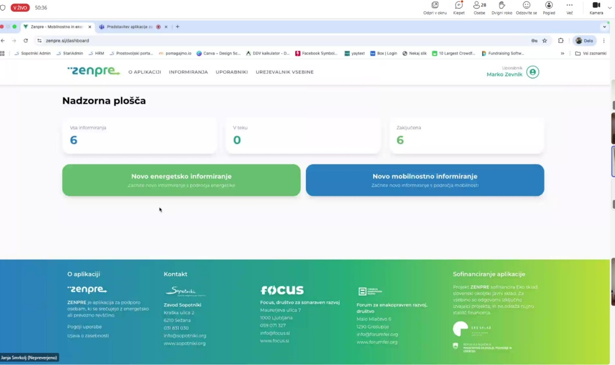 V začetku prihodnjega leta, predvidoma januarja ali februarja 2026, bo zaživela nova spletna aplikacija ZENPRA, namenjena blaženju energetske in prevozne revščine. Na predstavitvi 3. novembra je Zavod Sopotnik sodelujočim prikazal namen, delovanje in praktične primere uporabe aplikacije.