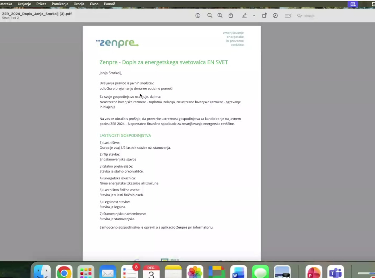 – preverjanje upravičenosti do subvencij za energetsko obnovo,