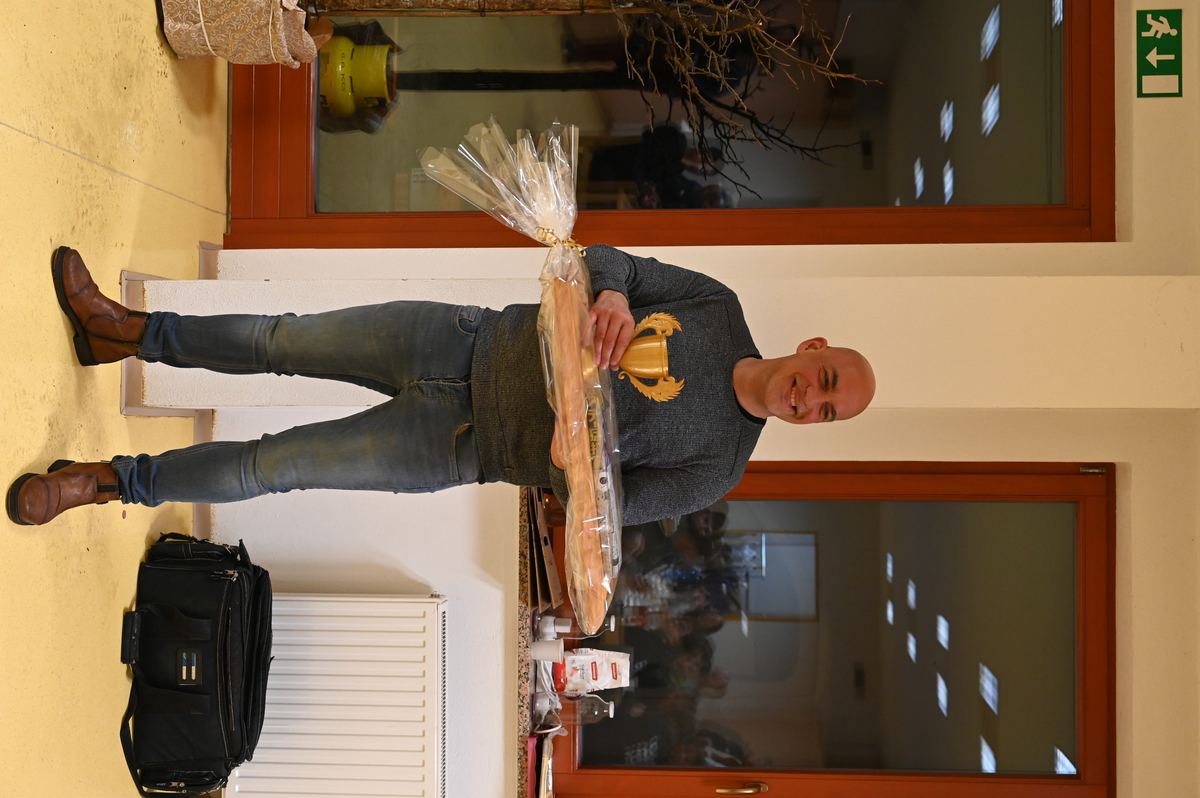 Mateju so godbeniki v zahvalo za vsa leta podarili drevo, veliko desko in vrhunski japonski nož z napisom Chef Matej ter pokal za v spomin na dosežke, ki smo jih skupaj dosegli.