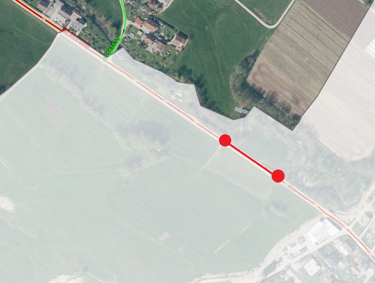 - v Dvoru (cestni odsek R3-641 1369 Ljubljanica–Ljubljana, od km 11,286 do km 11,530)