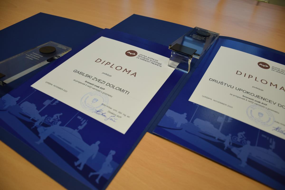 Javna agencija RS za varnost prometa vsako leto podeli priznanje AVP posameznikom, društvom, podjetjem, zavodom, združenjem in drugim organizacijam za njihov večletni prispevek na področju preventive, vzgoje in varnosti v prometu. Svet za preventivo in vzgojo v cestnem prometu Občine Dobrova - Polhov Gradec je na osnovi javnega razpisa podal predloge za prejemnike priznanj za leto 2019. Med nagrajence sta se zaradi svojega delovanja uvrstila tudi Društvo upokojencev Dobrova in Gasilska zveza Dolomiti.