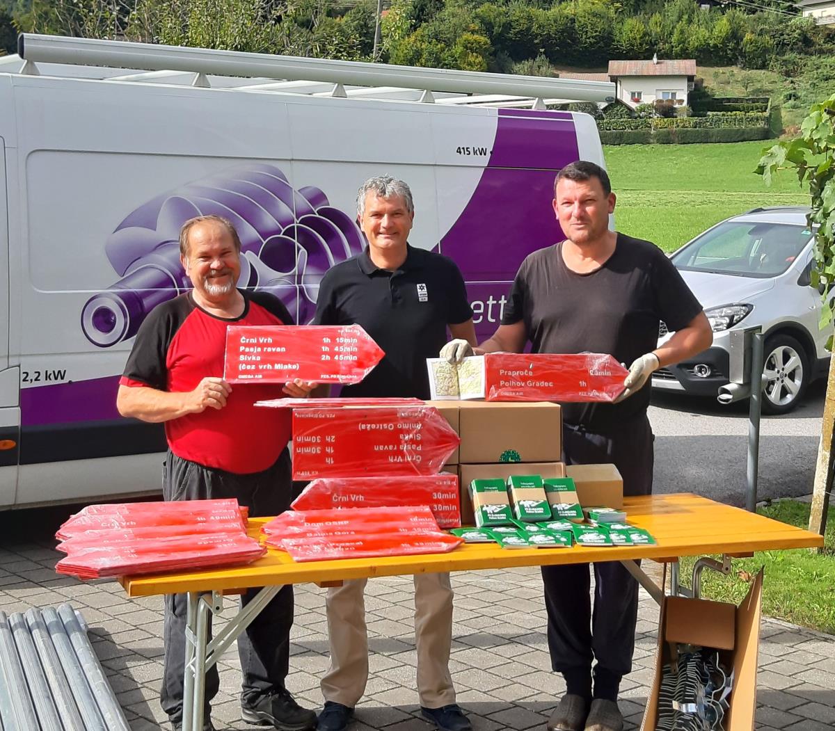 Na fotografiji: Predstavniki sodelujočih pri letošnjih akcijah PD Blagajana Polhov Gradec: predsednik PD Blagajana Polhov Gradec Stane Dvanajščak, vodja marketinga podjetja OMEGA AIR d.o.o. Ljubljana Igor Poljanšek in vodja markacistov Tomaž Velkovrh.