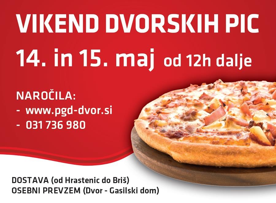 Organiziramo drugo izvedbo vikenda dvorskih pic. Za vas bomo v soboto, 14. maja, in v nedeljo, 15. maja, od 12h dalje pripravili vikend slastnih dvorskih pic, kakršne poznate na naši veselici – pečene v krušni peči pri gasilskem domu.