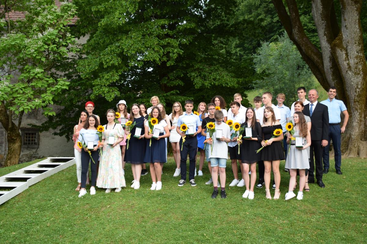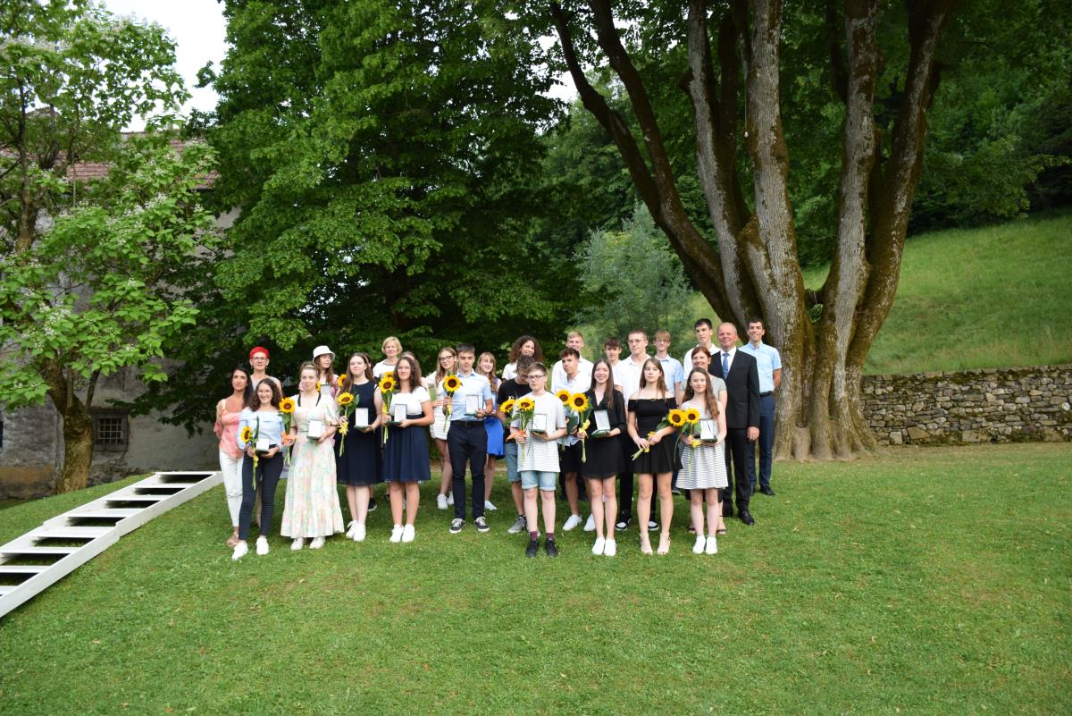 Župan Franc Setnikar je v četrtek, 23. junija 2022, v Polhograjski graščini sprejel 26 učencev in učenk OŠ Polhov Gradec in OŠ Dobrova, ki so vseh devet let šolanja dosegli odlični uspeh, in njihove ponosne družine. Sprejema sta se udeležili tudi obe ravnateljici, Ilinka Kucler in Sonja Bregar Mazzini, in razredniki letošnjih devetošolcev.