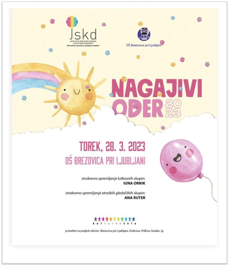 JSKD, Območna izpostava Ljubljana - okolica vabi na prireditev Nagajivi oder 2023, v sklopu katerega bo izvedenih več gledaliških predstav. Prireditev bo potekala v torek, 28. 3. 2023, v prostorih OŠ Brezovica pri Ljubljani.