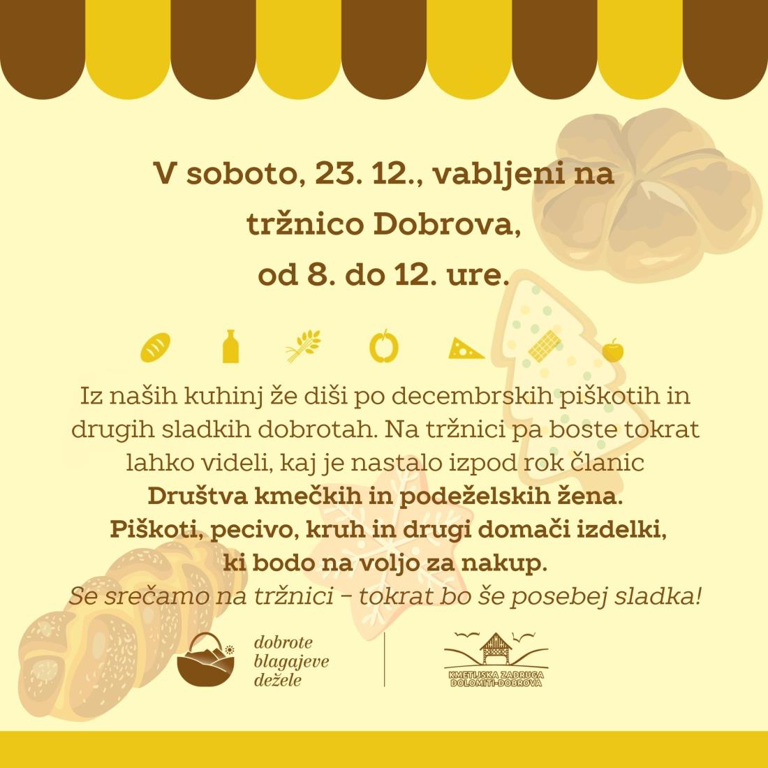 Tudi to soboto, 23. decembra, bo na Dobrovi odprta tržnica, med 8. in 12. uro.