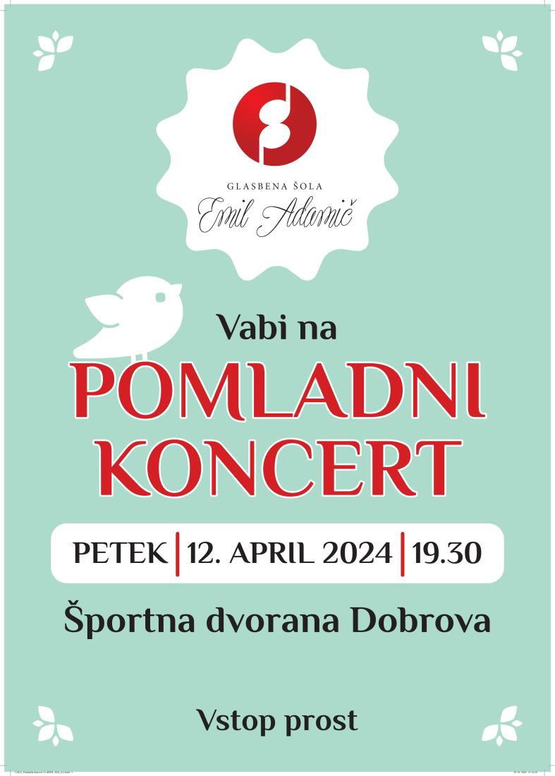 V petek 12. 4. 2024 vas ob 19.30 vabimo na koncert Glasbene šole Emil Adamič v Športno dvorano na Dobrovo, kjer se bodo predstavili mladi glasbeniki z domače glasbene šole.