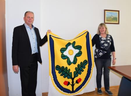 Projekt je podprla tudi Občina Dobrova - Polhov Gradec in z veseljem pričakovala končni izdelek. Župan Franc Setnikar se je Ireni Zaletelj, ki je kvačkala naš grb, ob uradni predaji zahvalil za njeno delo.