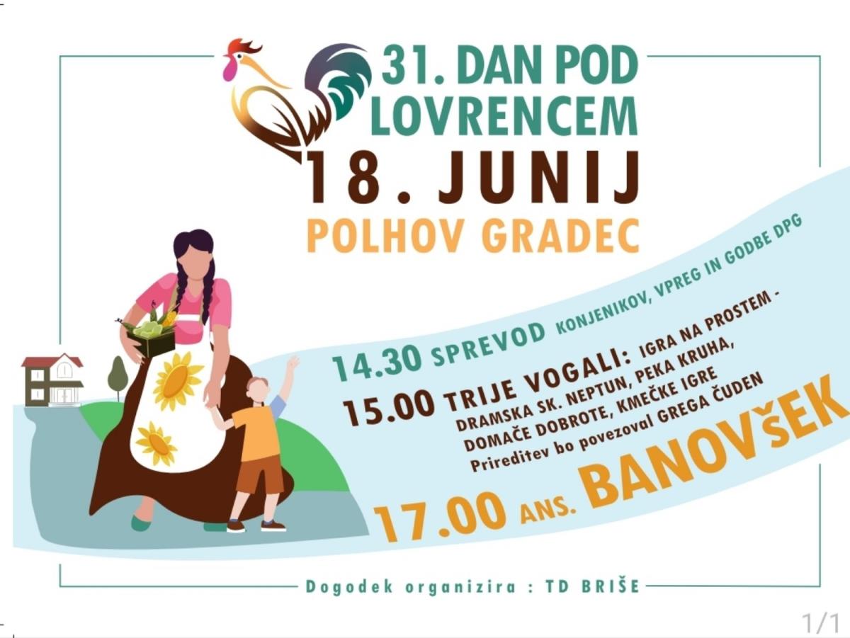 - ob 14.30: sprevod konjenikov, vpreg, narodnih noš, Godbe Dobrova - Polhov Gradec,