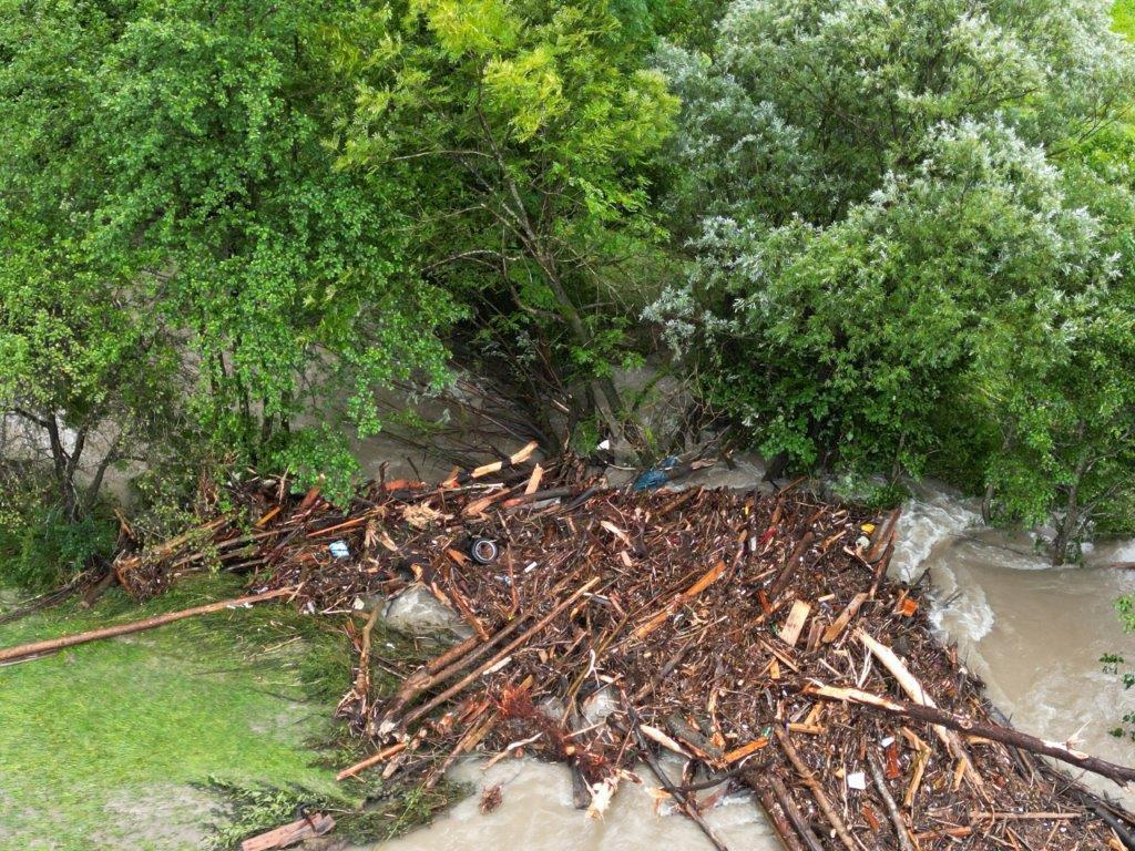 Ekipa Hidrotehnika odstranjuje naplavine, lesene čepe in urejajo pretočnost struge, most na cesti Polhov Gradec-Zalog so statično stabilizirali.