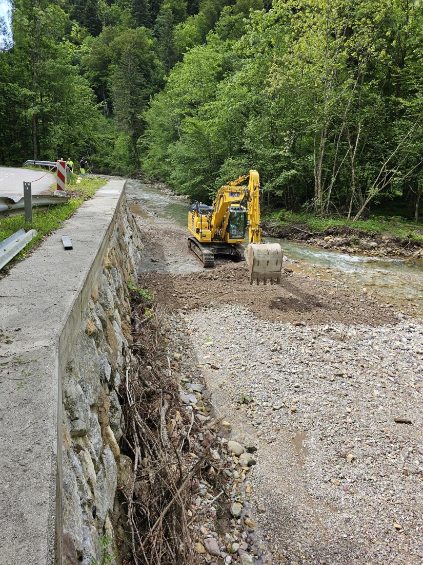 - V prvi fazi je poskrbel za sanacijo najbolj poškodovanih odsekov – zgradil je nove kamnite zložbe, izvedel je drenažo, obnovil ter izvedel še nove propuste, ter saniral poškodovane odseke ceste. Dela so potekala na treh odsekih, v tem času je bil vzpostavljena polovična in tudi popolna zapora. V začetku avgusta so se izdelovale še betonske vezi nad kamnitimi zložbami, obdelovali vtočni jaški, ter postavljala zaščitna ograja.